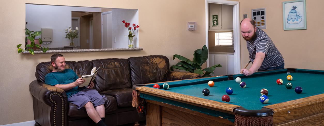 Our broad client base ranges from fully dependent, non-ambulatory individuals to ambulatory, semi-independent residents who undergo continuing education at nearby Victor Valley Community College. We offer 26 licensed beds for structured living and 5 non-licensed beds for semi-independent living.